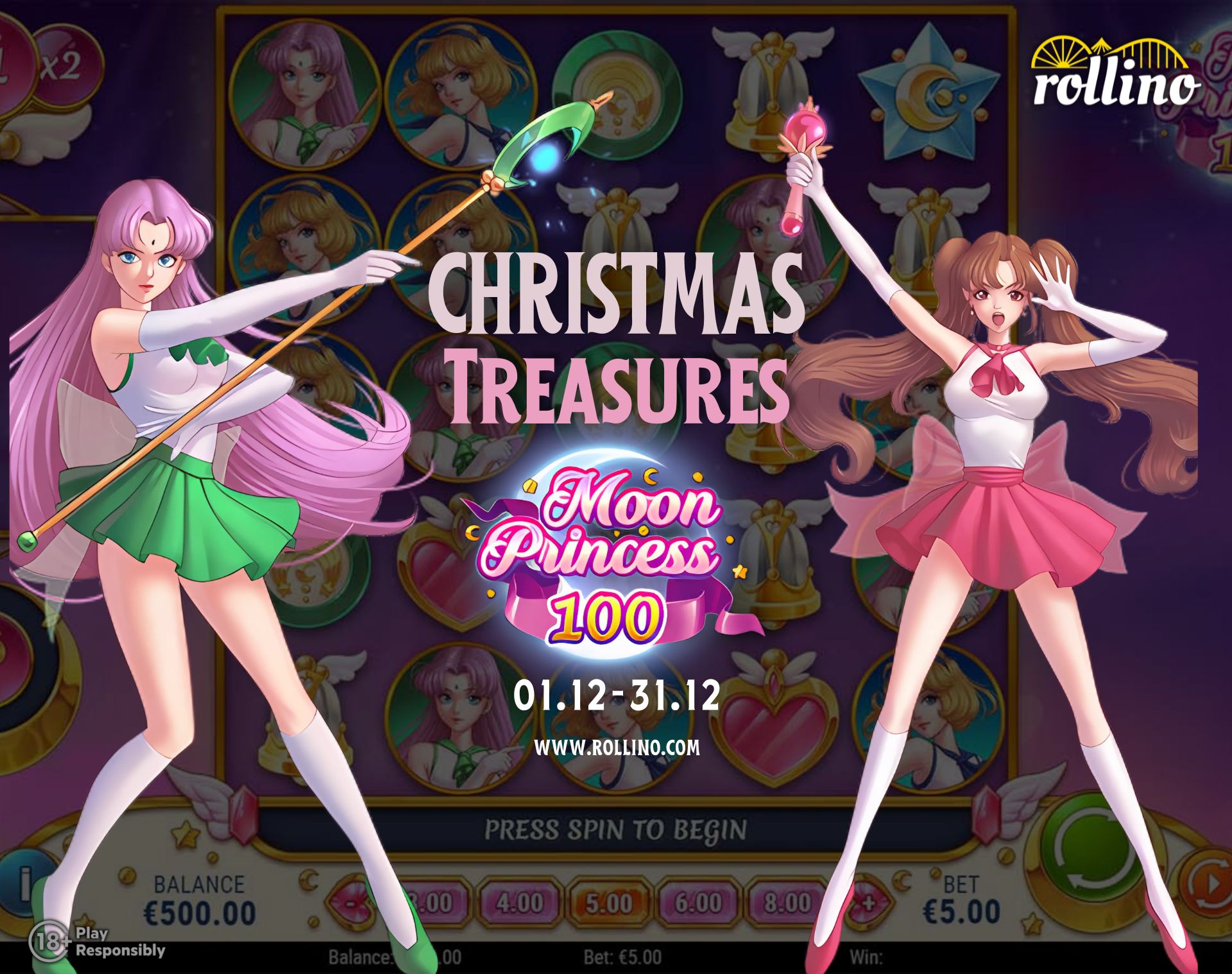 At Rollino Casino, we’re lighting up the holiday season with our dazzling Christmas Treasures Tournament! We’re inviting you to embark on a magical journey with Moon Princess 100 and other top-tier slots, competing for a share of an incredible €10,000 prize pool. This celestial celebration promises to be a festival of spins, wins, and holiday cheer!